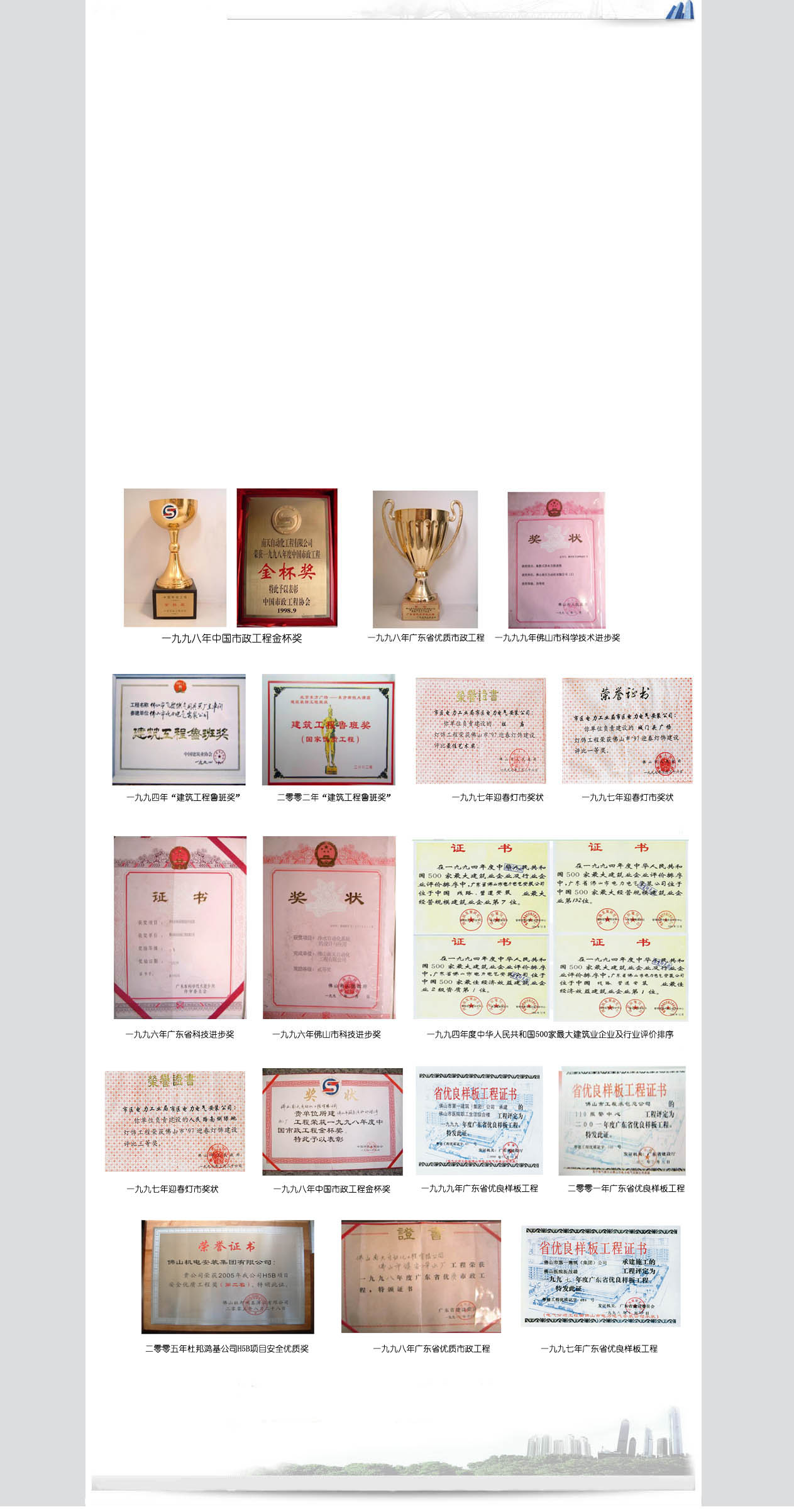 | 二零零一年佛山110报警中心工程被评为“广东省优良样板工程”(参建电气部分) |